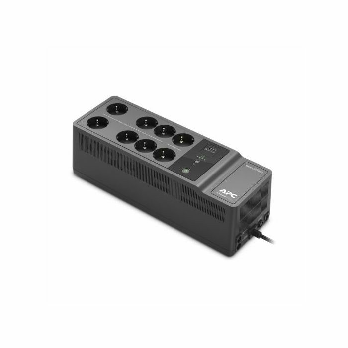 APC BE650G2-GR, APC Back-UPS 650VA 400W, 230V, 1 USB charging port. (6) Schuko CEE 7 (Battery Backup) (2) Schuko CEE 7 (Surge Protection only) outlets. 1x USB Type A Charging Port. Runtime 10,4min half load 2,6min full load.