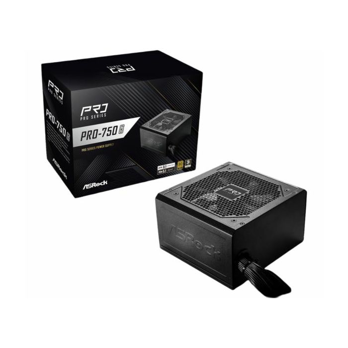 ASRock PSU PRO Series PRO-750G, 750W, 80 Gold - 80 PLUS GOLD Certified ATX3.1 PCIe5.1 Ready Native 12V-2x6 Connector Dual Color Design Low noise 120mm FAN Reliable 3-Year Warranty Dimensions(L x W x H) - 140mm x 150mm x 86mm Cable Type: Flat Motherboard cable (24pin): 1x, EPS 12V CPU connectors (4 4pin): 1x, PCIe5.1 connectors(12 4pin) Dual Color: 1x, PCIe connectors (6 2pin): 2x, 4-pin Peripheral connectors: 2x, SATA 5-pin connectors: 4x