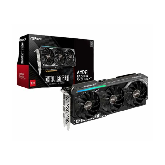 Asrock Radeon RX 9070 XT Challenger 16GB, 16GB GDDR6 - Boost Clock: Up to 2970 MHz 20 Gbps Game Clock: 2400 MHz 20 Gbps 16GB GDDR6 on 256-Bit Memory Bus 64 Compute Units (3rd Gen RT 2nd Gen AI Accelerators) PCI Express 5.0 Support 2x 8-pin Power Connectors 3 x DisplayPort 2.1a 1 x HDMI 2.1b Recommended PSU: 750W Dimensions: 290 x 123 x 56 mm, 2.8-slot