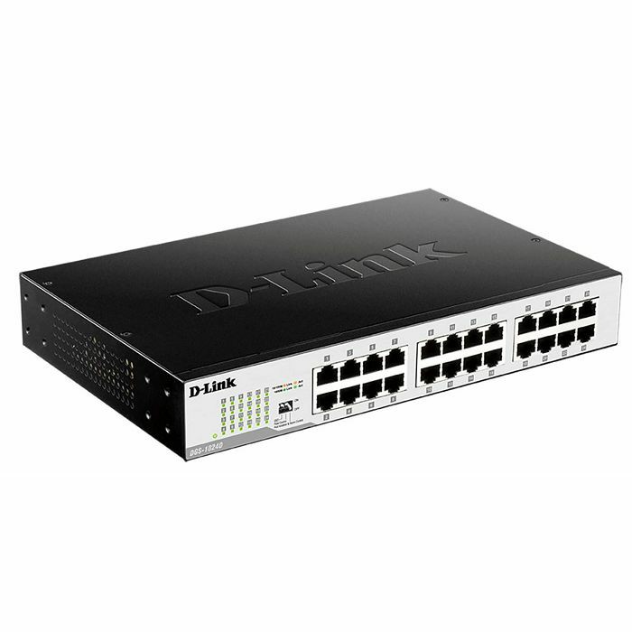 DGS-1024D je SOHO neupravljivi preklopnik, metalnog kućišta , namjenjen manjim mrežama i radnim grupama. Dvade set i četiri gigabitna Ethernet porta posjeduju svojstvo automatske detekcije UTP kabela, omogućavajući rad uz korištenje straight-through ili crossover kabela. Uz to, preklopnik testira ispravnost kabela, signalizirajući mogući prek id. K oristi interno napajanje, hladi se dvama bočno ugrađenim ventilatorima. Montaža može biti zidna ili stolna. Zbog desktop dimenz ija koriste se duži metalni nosači pri ugradnji u 19" komunikacijski ormar.