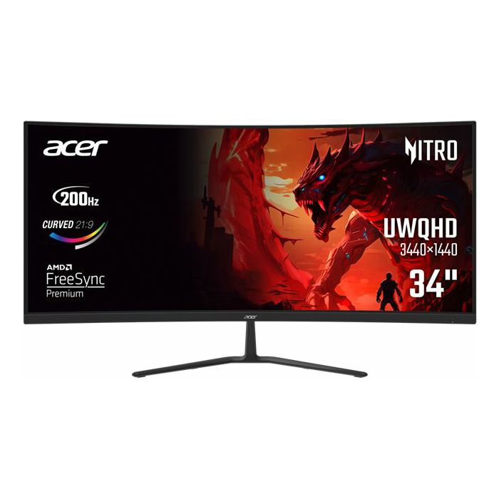 Nitro ED340CURX0bmiipx, 34", Curved, Ultra Wide, 21:9, VA, 3440x1440, 250 cd/m2, 200Hz, 4000:1, 178°/178°, 1ms, HDR10, DP, 2x HDMI, Audio Out, tilt, zvučnici, VESA, Boja Crna, 2Y