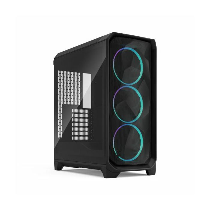 Fractal Design Meshify 3 Black RGB TG Light Tint, FD-C-MES3A-07 - Experience advanced cooling and expressive, aerodynamic design. An evolution of our mesh performance series, Meshify 3 offers performance-boosting engineering upgrades and three powerful Momentum fans 3.5" 2.5" drive mounts: 2 4 Dedicated 2.5" drive mounts: 2 (6 total) Expansion slots: 7 Front interface: 1 x USB Type-C 20 Gbps, 2 x USB Type-A 5 Gbps, 1x Audio Combo Jack, Power button Total fan mounts: 6x 120 mm or 5x 140 mm 1x 120 mm Front fan: 3x 120 mm, 3x 140 mm (3 x 140 mm Momentum Included) Top fan: 2x 120 mm, 2x 140 mm Rear fan: 1x 120 mm Dust filters: PSU (Bottom) Power supply type: ATX Motherboard compatibility: E-ATX (277 mm) ATX MATX m-ITX PSU max length: 180 mm GPU max length: 349 mm CPU cooler max height: 173 mm Front radiator: 280 360 mm Top radiator: 240 280 mm Rear radiator: 120 mm Case dimensions (LxWxH): 433 x 229 x 507 mm