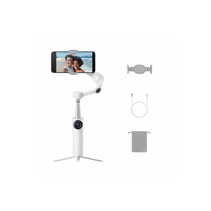Napredni gimbal stabilizator za pametne telefone koji omogućuje izuzetno glatke i profesionalne video snimke bez podrhtavanja. Namijenjen je content creatorima, vlogerima, influencerima i svima koji žele jednostavno i stabilno snimati video s mobitela; 3-osna mehanička stabilizacija (Pan/Tilt/Roll) — uklanja podrhtavanje i omogućuje vrlo glatke snimke čak i u pokretu; Deep Track 4.0 AI tracking — pametno prati osobu ili objekt u kadru za precizno automatsko fokusiranje; Ugrađeni selfie stick i mini tripod; Do 10 sati rada baterije; USB-C punjenje; Kompaktan, sklopiv dizajn — idealan za nošenje u torbi ili ruksaku; Kompatibilnost s Insta360 aplikacijom (iOS & Android)