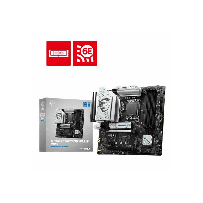 B760M GAMING PLUS WIFI, LGA1700, B760, DDR5, Broj utora 4, 4800 - 6800MHz, PCIe 4.0 x16 1, SATA3 4, RAID 0, RAID 1, 8-kanalni audio, 1x 2.5Gb Ethernet, Display Port 1, ATX, WLAN connector 2, USB 3.2 4