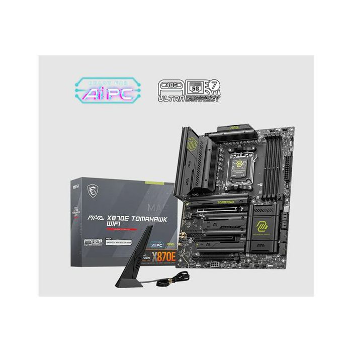 MAG X870E TOMAHAWK WIFI, AM5, AMD X870E, DDR5, Broj utora 4, 4800 - 8400MHz, PCIe 5.0 x16 1, SATA3 4, RAID 0, RAID 1, 8-kanalni audio, 1x 5Gb Ethernet, ATX, WLAN connector 2, USB 3.2 4
