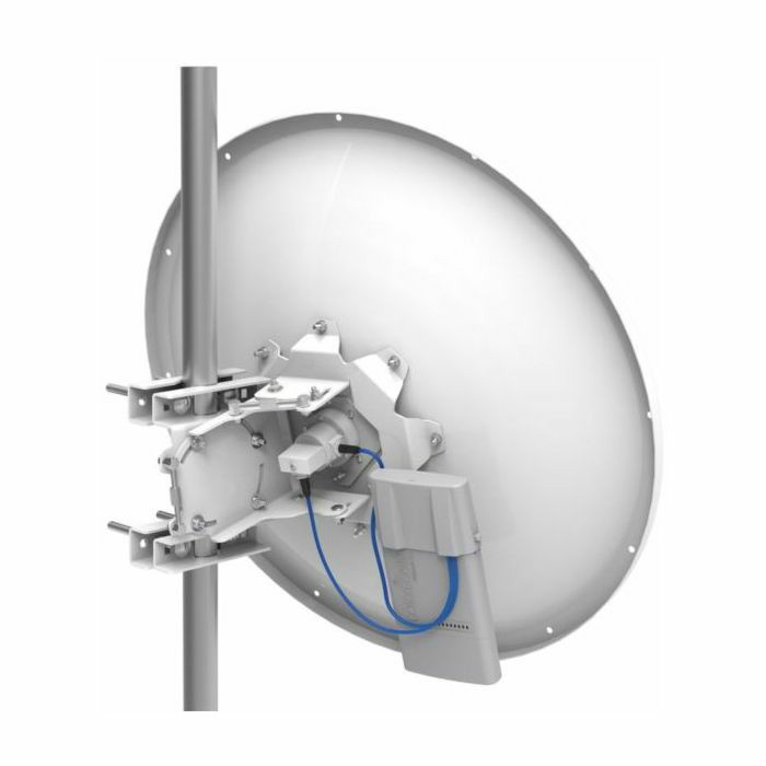 MikroTik MTAD-5G-30D3-PA (mANT30 PA) 30dBi 5Ghz Parabolic Dish antenna with precision alignment mount. Antena Gain 30dBi, Dual Polarity Vertical Horizontal. Beamwidth 3 deg, Elevation adjustment range - 15 deg. It is built to seamlessly accommodate Mikrotik BaseBox series products, but can be used for any pole mounted wireless device due to the adequate length of the included FlexGuide cable. dimension (70 x 45cm), Reflector: Aluminum, Connector Type RPSMA, Package Includes FlexGuide RPSMA RF Cables (RP-SMA-male to RP-SMA-male) x 2pcs; Bracket for mounting BASEBOX series radio; Self-Bonding Tape for insulating the RF cables x 2 slices; Precise alignment mechanisms