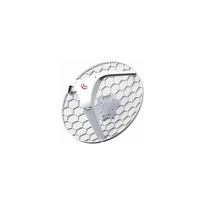 MikroTik LHG XL 5 AC (RBLHGG-5acD-XL) 4-Pack, Long Range 5GHz 802.11ac wireless device with an integrated dual polarization 27 dBi grid antenna. It is perfect for point to point links or for use as a CPE at longer distances and supports Nv2 TDMA protocol. The device includes one 10 100 1000 Mbit Ethernet port. ARM 32bit IPQ-4018 4 core 716 MHz CPU. Dimension O 550 x 245 mm. RouterOS LVL 3. Includes 24V 0.38A power adapter, Gigabit PoE injector, two metal rings to mount on a pole.