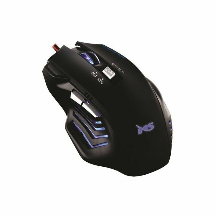 Optički žičani gaming miš sa USB konektorom, presvučenim kablom duljine 1.8m, Rezolucija 2400 dpi/cpi, 6 tipki + Scroll, RGB, Boja Crna