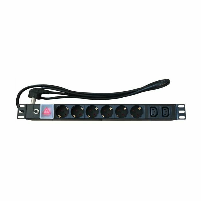 NaviaTec PDU009 - PDU (Power Distribution Unit) sa 6x Schuko priključaka 2x IEC 320 C13 priključaka, glavnim (Master) prekidačom, zaštitom za djecu i zaštitom od prenapona (Master surge protector). Kabel: Schuko, dužina 1,8m Za 19" mrežne ormare Max. snaga 3500W Ulaz frekvencija: 220V 50Hz Nazivna struja: 16A Crne boje