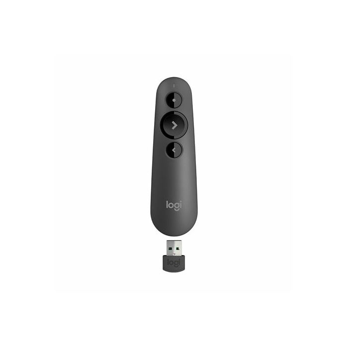 Predstavljamo R500s, plug-and-play prezentacijski daljinski upravljač koji vam omogućuje navigaciju slajdovima i lasersku točku s udaljenosti do 20 metara. Izvedite svoju prezentaciju s lakoćom i pouzdanjem zahvaljujući nepogrešivom dizajnu s tri gumba i udobnom i sigurnom držanju R500s u ruci. R500s je optimiziran za većinu uređaja i popularane softvere za prezentacije – a možete i prilagoditi gumbe, provjeriti trajanje baterije i postaviti mjerač vremena na zaslonu u Logitech Presentation App.