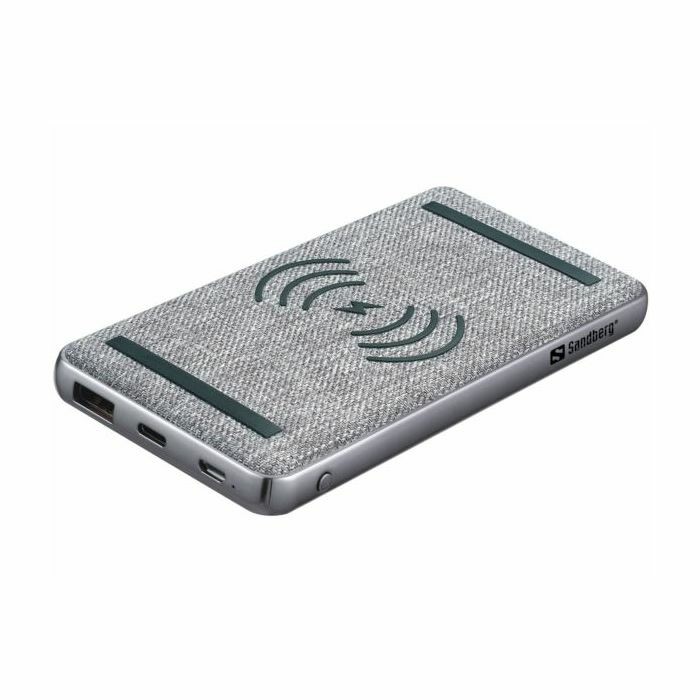 Sandberg Powerbank 10000 PD20W Wireless - Capacity: 10000 mAh 37 Wh Battery type: Li-polymer Connectors: 1 x Micro USB female, 1 x USB-C female, 1 x USB A female Micro USB input: 5V 2A, 9V 2A, 12V 1.5A USB-C Input: 5V 2.4A, 9V 2A, 12V 1.5A USB-C Output: 5V 3A, 9V 2A, 12V 1.67A (PD 20W) USB A Output: 5V 2.4A, 9V 2A, 12V 1.5A Wireless output: 5W 7.5W 10W 15W Frequency: 100 Hz - 180 kHz Charging distance: ?10 mm Charging efficiency: 65% Wireless standard: Qi