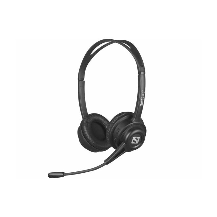Sandberg Wireless Call Headset - for use in such locations as a home office, work or for teaching. The microphone is on a flexible arm, which ensures that the other person can hear you clearly. A speaker for each ear also means that reproduction of the other persons speech is clear and distinct. The discreet lightweight construction and adjustable headband provide you with optimal comfort. Connect to PC, smartphone or tablet via Bluetooth for immediate use. Volume control directly on the headset. Listening time: Up to 24 hours Standby time: Up to 160 hours Charging time: 2 hours