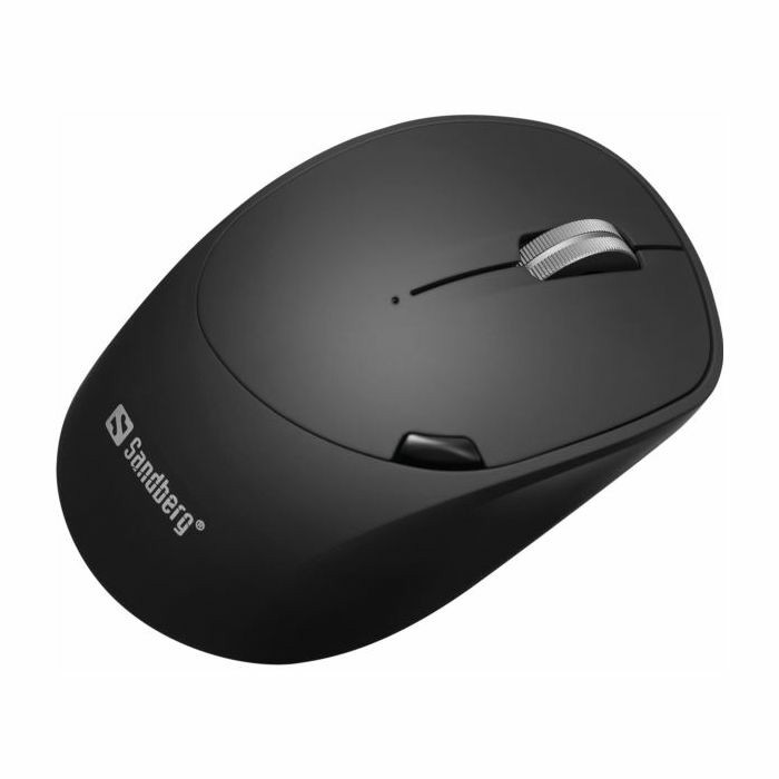 Sandberg Wireless Mouse Pro Recharge - Connects wirelessly either via Bluetooth integrated in the computer, or with the included USB dongle 2.4 GHz Bluetooth 5.0 Working distance: up to10 metres 6 buttons Scroll wheel Auto sleep mode after 10 minutes without use USB-C charging cable Rechargeable battery 500 mAh Optical resolution: 1000-1200-1600 DPI