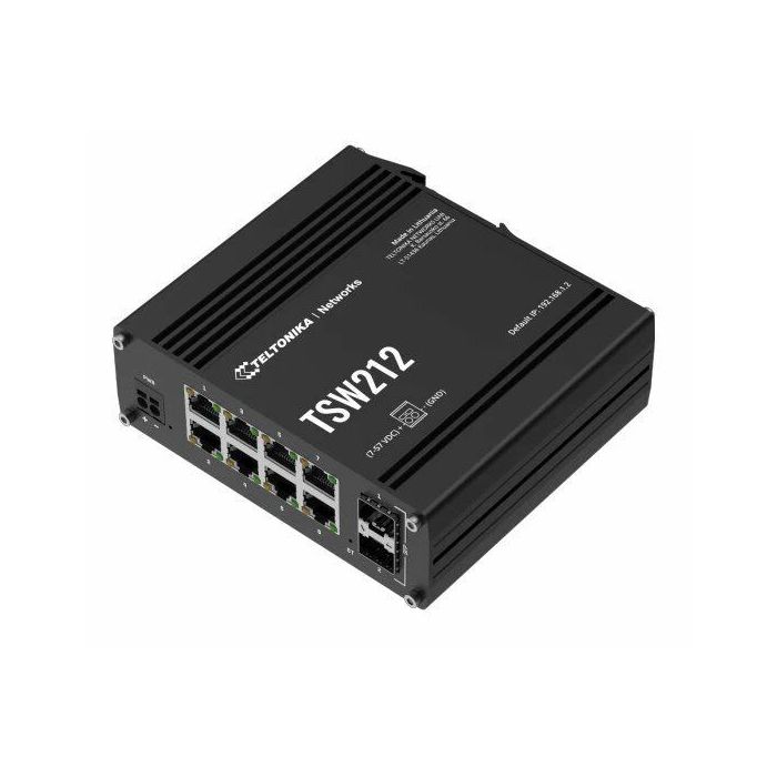 Teltonika TSW212 Managed Network Switch - 8x1G LAN and 2xSFP, Support for EtherNet IP, PROFINET, and MRP, Rugged design, Integrated DIN rail mount