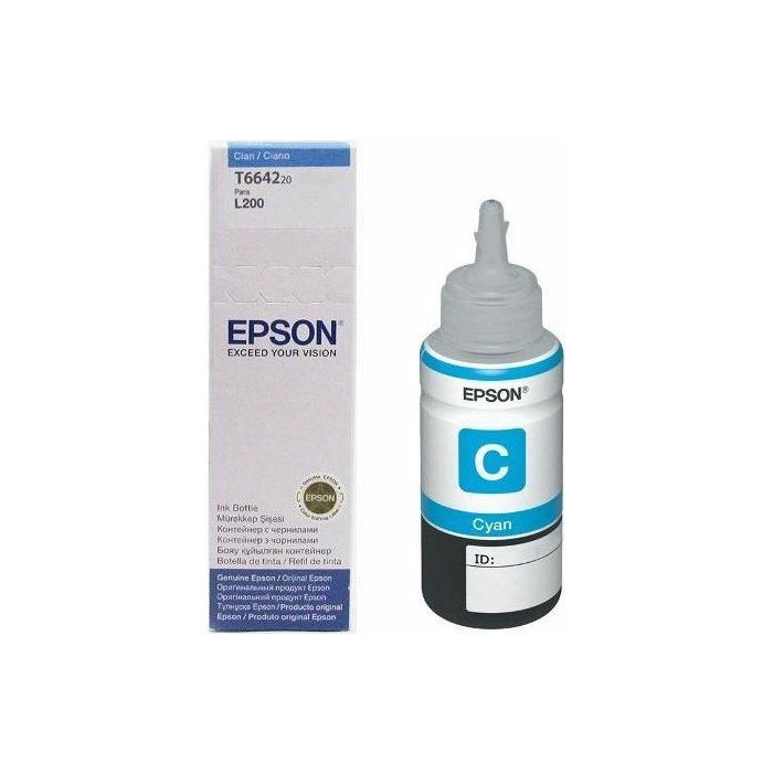 Tinta Epson T66424 cyan. Podržava pisače CISS L100, L110, L200, L210, L220, L300, L310, L355, L365, L386, L382, L455, L565, L550, L486, L1300 C13T66414A.