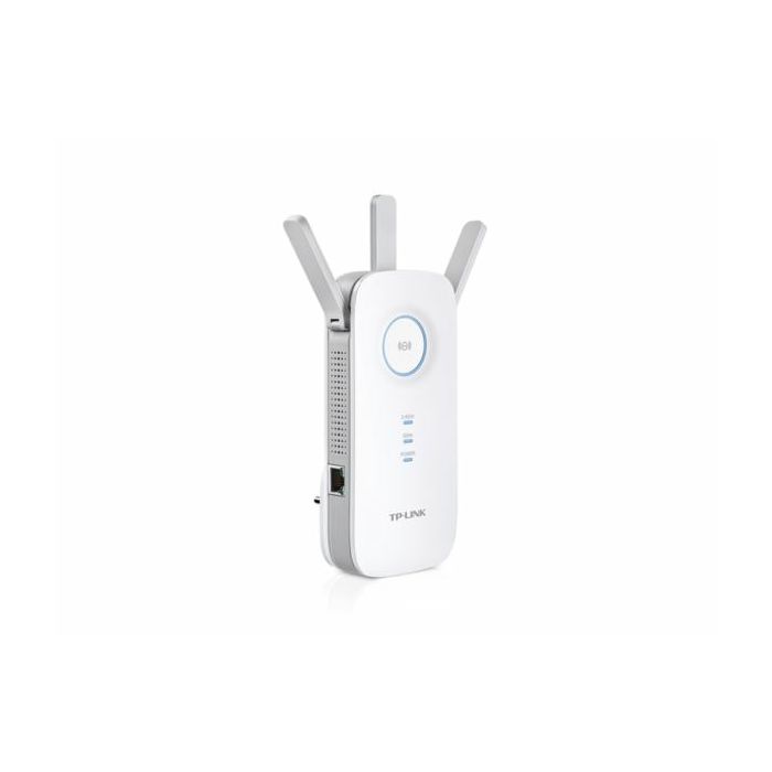 TP-Link RE450, AC1750 Dual Band Wireless Wall Plugged Range Extender,1xGLAN, 1300Mb-5GHz 450Mb-2.4GHz, 802.11ac a b g n. Three adjustable external antennas. Gigabit Ethernet port acts as a wireless adapter to connect a wired device to your network at gigabit speed. Dimension 163 x 76.4 x 66.5mm