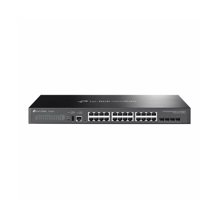 TP-Link SG5428X Omada 24-Port Gigabit Stackable Lite L3 Managed Switch with 4x 10G Slots 24x 10 100 1000 Mbps RJ45 Ports, 4x 1 10 Gbps SFP Slots, 1x USB 2.0 Port, 1x RJ45 Console Port, 1x USB Type-C Console Port Fanless Dimensions ( W x D x H ): 440 x 180 x 44 mm Rackmountable Jumbo Frame: 9 KB Package Content: SG5428X Switch, Power Cord, Console Cable, Rackmount Kits, Rubber Feet, Quick Installation Guide