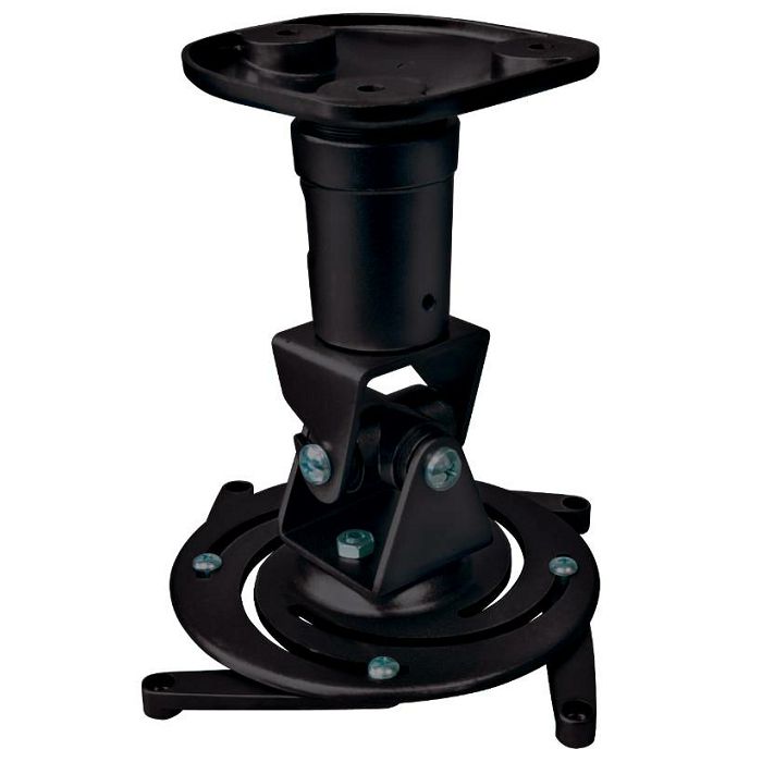 Transmedia H 16-1 S -Beamer stropni držač s kardanskim zglobom Podesiv za sve standarde rupica Od čvrstog aluminija Anodizirana završna obrada Crna boja Uključuje vodič za brzo postavljanje i pribor Max opterećenje 30lbs (13,6 kg)