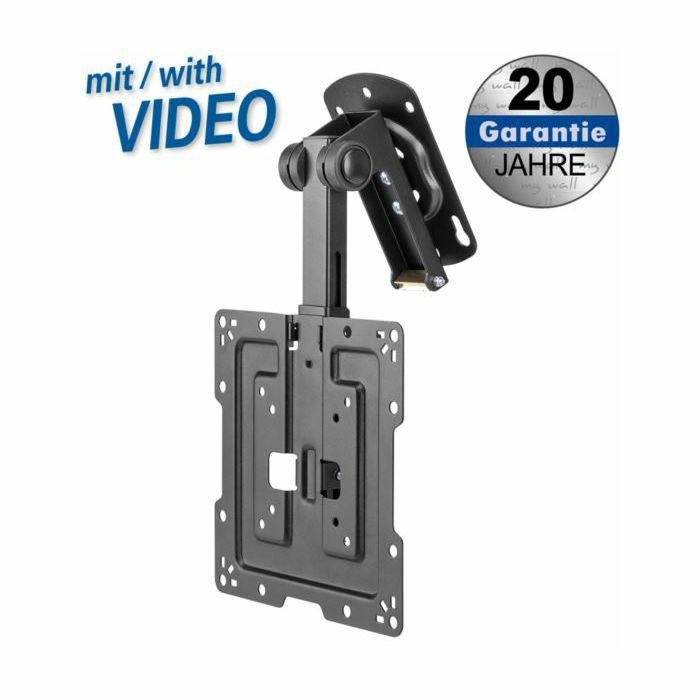 Transmedia Folding Suspension Bracket for Flat Screens 19" - 43" - holds weight up to 20 kg, for flat screens 19" - 43" (48-109 cm), foldable - tilt: - 90 - swivel: 90 - distance to ceiling: 337 - 431 mm - VESA: 75x75, 100x100, 100x200, 200x100, 200x200 - perfect for mounting under hanging locker or for installation on sloping ceilings,