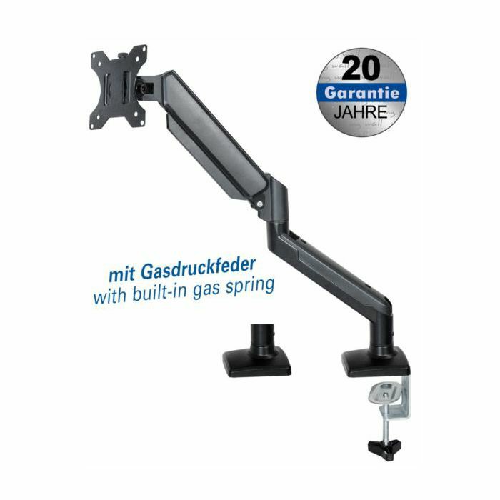 Transmedia Full-motion desk stand with gas spring, HL 57 - For flat screens 17" - 32" (43 - 81 cm) Load capacity: 2 - 9 kg Height adjustable max. 310 mm Tilt: - 90 Swivel: 180 Horizontal roatation: 360 VESA: 75 100 Incl. cable management Incl. mounting clamp 10 - 70 mm and adapter plate for fixed mounting