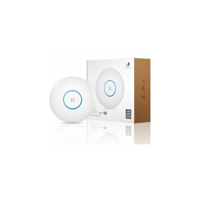 Ubiquiti Networks UAP-AC-PRO, UniFi AP AC1750 Class Pro. 802.11ac 3x3 Mimo Dual Radio Access Point for Indoor Outdoor Use. 2.4 GHz Speed 450 Mbps. 5 GHz Speed 1300 Mbps. Range up to 122 m. Power: 48V PoE 802.3af PoE 802.3at PoE . 48V, 0.5A PoE Gigabit Adapter included. 2x RJ45 Gigabit Ethernet Ports. (1) USB 2.0 Port. (3) Dual-Band Antennas, 3 dBi Each. Max TX Power 22dBm. Includes Ceiling Mount Wall Mount Kit. Dimension 196.7 x 196.7 x 35 mm