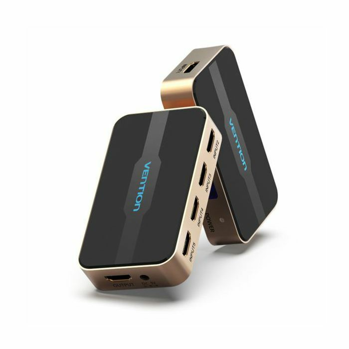 Vention HDMI Switch 5 In 1 Out Gold - Interface: HDMI A Female, DC Power Port HDMI 4K30Hz DC 5V 1A LED Power Indicator, 5 Signal Indicators