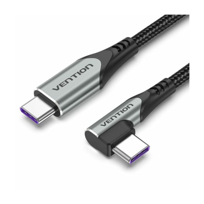 Vention USB 2.0 C Male Right Angle to C Male 5A Cable 1M Gray - Shell: Aluminum Alloy Conductor: Tinned Copper Transmission Rate: 480Mbps Rated Current: 5A