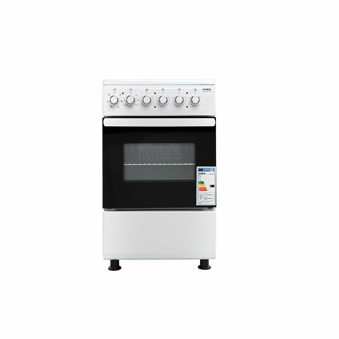 VIVAX samostojeći štednjak FC-04502VCF WH idealan je odabir za svaku kuhinju jer osvaja modernim izgledom i jednostavnim korištenjem. Ventilatorska funkcija pečenja cirkulacijom vrućeg zraka i gril funkcija pruža vrhunske uvjete za brzo i profesionalno pečenje na jednom ili nekoliko razina istovremeno. Unatoč širini od 50 cm, pećnica je zapremine 52 l i najviše energetske klase A. Bijela boja štednjaka u kombinaciji s crnom vitrokeramičkom gornjom pločom siguran je odabir koji se uklapa u svaku kuhinju. VIVAX samostojeći štednjak FC-04502VCF WH je vrhunski model električnog štednjaka s četiri vitrokeramičke grijaće ploče. Standardna oprema pećnice je rešetkasta polica i plitka posuda.