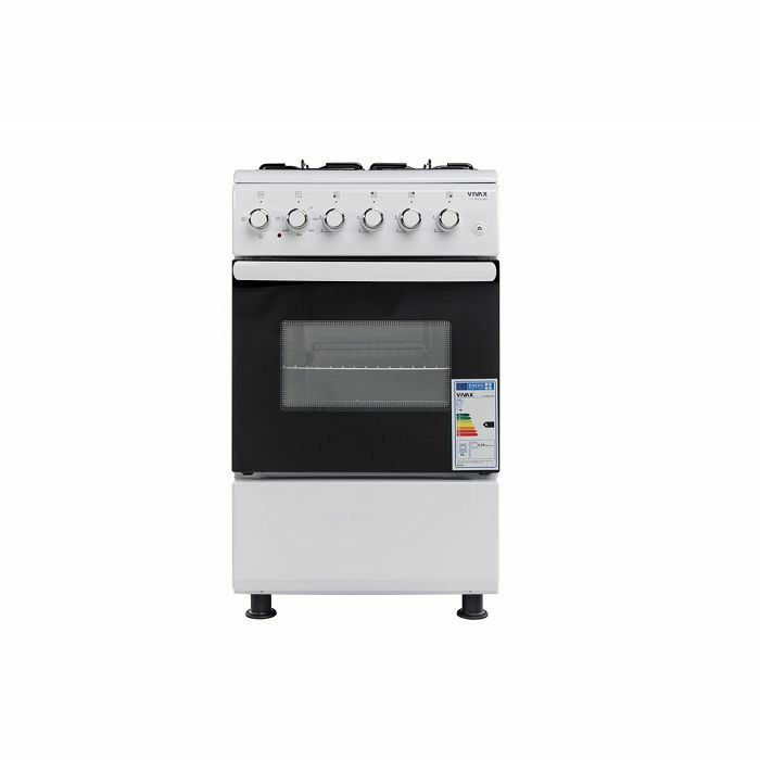 VIVAX samostojeći štednjak FC-40502I WH idealan je odabir za svaku kuhinju jer osvaja modernim izgledom i jednostavnim korištenjem. Jednostavna pećnica s tri programa pečenja pruža vrhunske uvjete za brzo i profesionalno pečenje. Unatoč širini od 50 cm, pećnica je zapremine 52 l i najviše energetske klase A. Prednja vrata štednjaka imaju dvostruko nisko temperaturno staklo. Vrata se mogu potpuno odstraniti radi lakšeg čišćenja. Gornja ploča štednjaka napravljena je od visoko otpornog emajliranog metala s emajliranim držačima posuda. VIVAX samostojeći štednjak FC-40502I WH je plinsko-električni model štednjaka s četiri plinska plamenika. Plinski plamenici opremljeni su zaštitnim sklopom protiv neželjenog istjecanja plina, a paljenje plamenika vrši se pritiskom na tipku za davanje iskre. Standardna oprema pećnice je rešetkasta polica i plitka posuda.