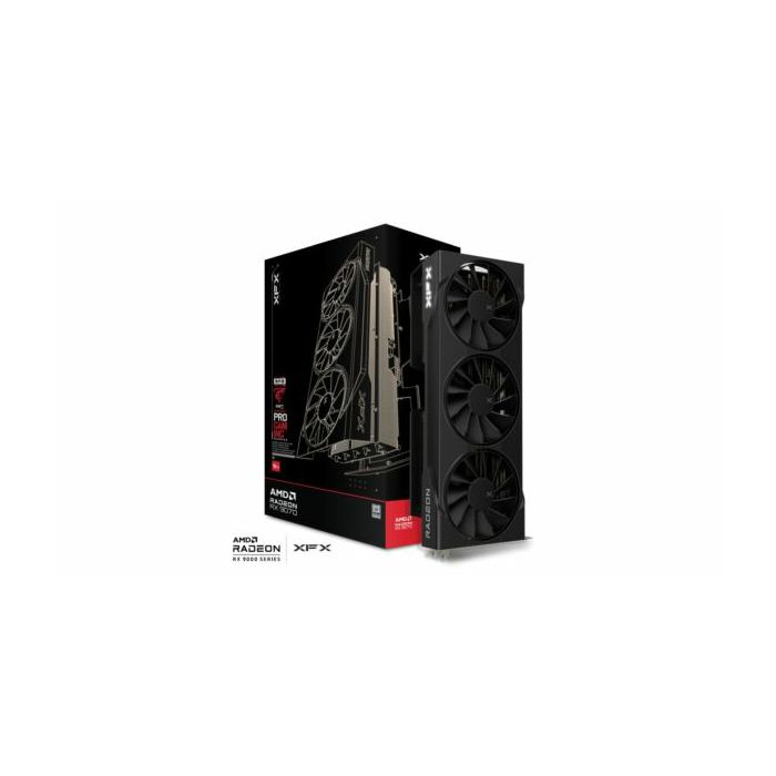 XFX Swift AMD Radeon RX 9070 OC Triple Fan Gaming Edition - Base Clock Up To: 1440 MHz Boost Clock Up To 2700 MHz GDDR6 Memory Size 16 GB Memory Clock Speed 20 GBPS Stream Processors: 4096 Compute Units: 56 Memory Bus: 256bit DisplayPort 2.1: 3x , HDMI 2.1: 1x External Power: 2x PCI-E 8 pin connections Minimum Power Supply Requirement: 800 watt
