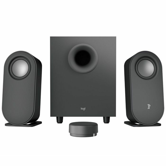 Zaronite u izvrstan zvuk pomoću Logitech Z407 Bluetooth zvučnika za zabavu i igranje sa subwooferom i bežičnom kontrolom. Doživite i mpresivan zvuk, duboke basove i jasnoću te glasnoćom upravljajte bežično putem okretnog kotačića. Z407 su elegantno dizajnirani zvučnici te ih možete postaviti vodoravno ili okomito. S vašim izvorom zvuka možete se povezati na više načina putem Bluetooth 5.0 i USB audio veze, odnosno standardno putem 3,5 mm kabla. Stručno podešeni 2.1-zvučnički sustav isporučuje maksimalnu snagu od 80 W. Digitalna obrada signala nudi uravnotežen profil zvuka i poboljšava basove kako biste uživali u „punom“ zvuku.